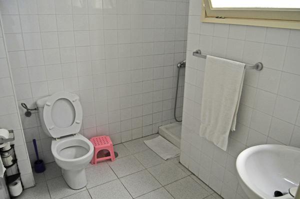 Geheimtipp ist auch das große Apartment Nr. 10 im zweiten Obergeschoß, welches etwas hochwertiger ausgestattet als die Nr. 1 im Erdgeschoß und ebenfalls über 2 hintereinanderliegende, geräumige Schlafzimmer verfügt, dazu eine Küche mit vollwertigem Herd und Einbauküche, Wohnzimmer mit Sitzecke und Fernseher und einen kleineren Balkon mit sehr schöner Aussicht auf den Strand direkt vor dem Haus. Dieses geräumige Apartment ist für 2 bis 5 Personen und Familien gut geeignet und bietet sehr viel Platz fürs Geld.