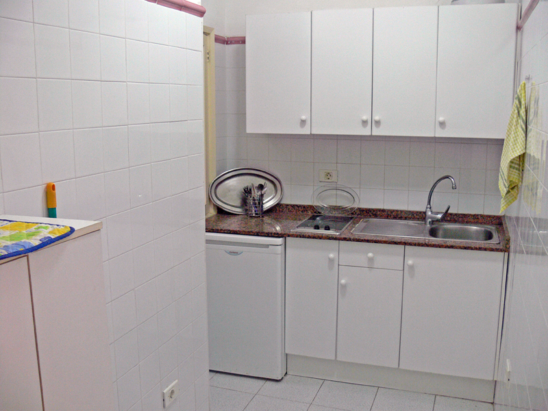 Das etwas günstigere große Apartment Nr. 1 im Erdgeschoß/Hochparterre hat zwar keinen Balkon, jedoch von 2 Räumen aus schöne Aussicht aus den großen Fenstern auf die Strandpromenade und das Meer. Surfer, Familien mit Kindern oder Langzeit-Urlauber fühlen sich hier wohl und zahlen einen für die Lage sehr günstigen Monatspreis bzw. gemessen am Platzangebot niedrige Tagesraten.