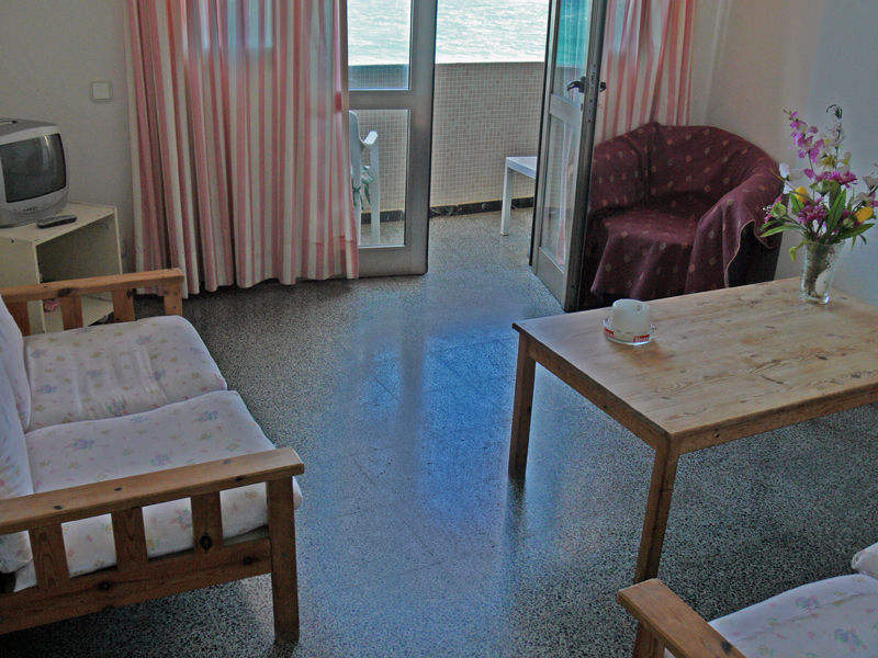 kleinere Studios, teilweise mit kleinem Balkon, immer mit Meerblick, mit kombiniertem Wohn-/Schlafraum mit SAT-TV, Küche mit Kochfeld & Kühlschrank, Esstisch, Bad mit Dusche, WC. Alle Nebenkosten, wie Gas, Wasser, Strom Reinigung und Endreinigung sind inklusive. Beim Monatspreis reduzieren sich die Reinigungszyklen.