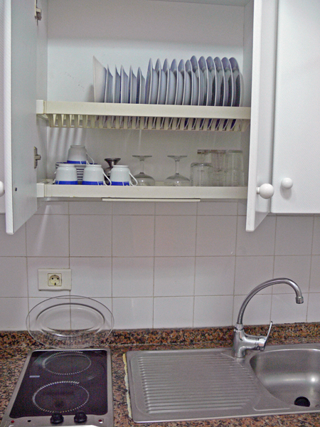 Die Studios im 1. und 2. Obergeschoß (kombinierter Schlaf-Wohnraum, Küche, Bad) kosten 37 € pro Tag ohne Balkon und 40 € pro Tag mit dem kleine Balkon, jeweils mit Meerblick. Die EInrichtung ist einfach und sauber – ideal für Gäste die in guter Lage und mit schönem Ausblick wohnen, aber kein allzu großes Reise-Budget haben. Maximale Belegung ist hier 2 Erwachsene und evtl. noch ein Kleinkind im optionalen Kinderbett. Mit Monatspreisen ab 750 Euro sind die Studios auch beliebt bei alleinreisenden Überwinterern und Langzeit-Urlaubern.