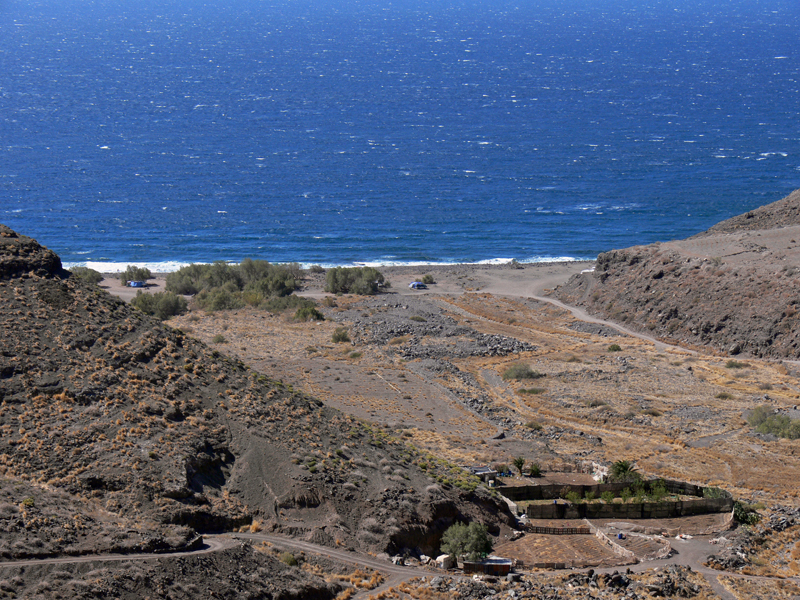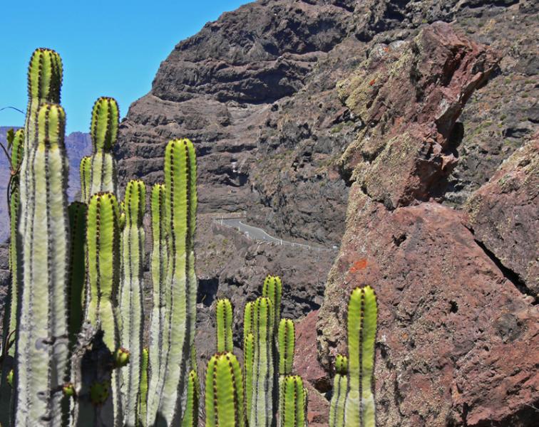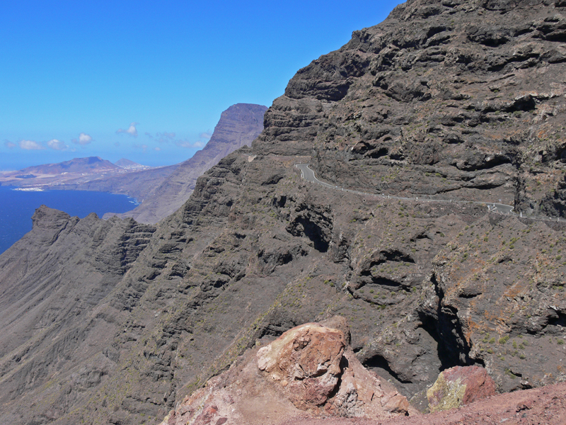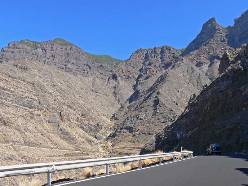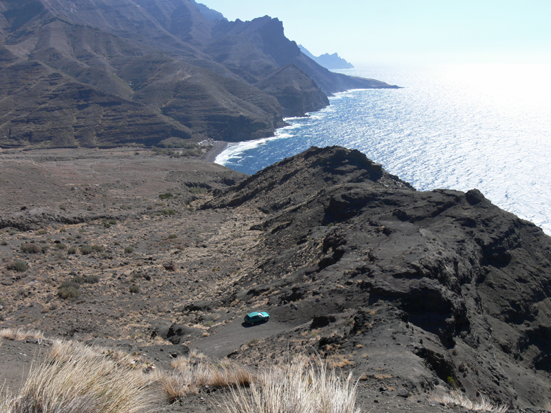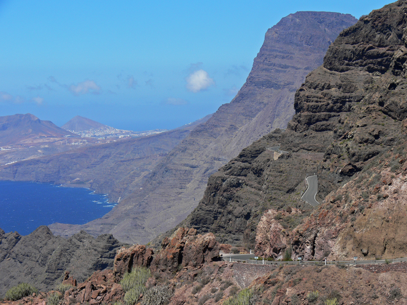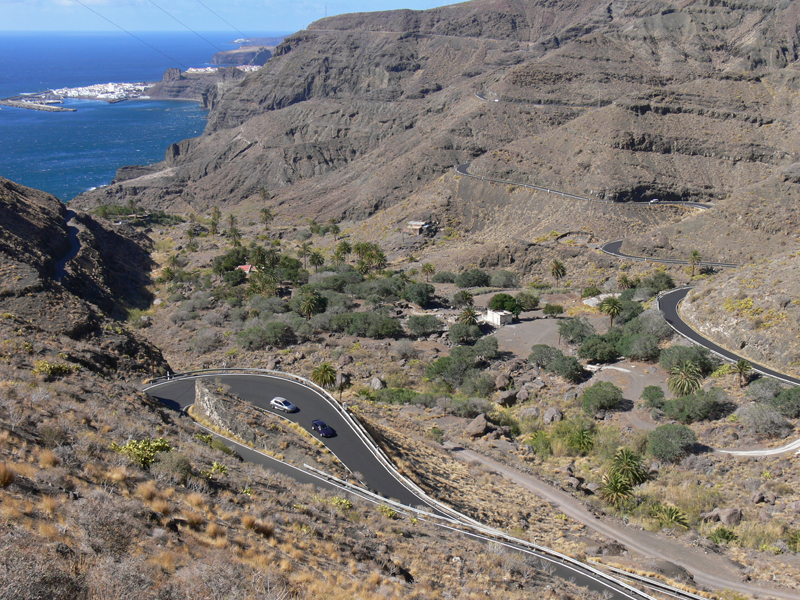Hierbei handelt es ich wohl um eine der schoensten Auto- und Motorradstrecken Europas. Nur wenige Meter vom Strassenrand faellt die Steilkueste mehr als hundert Meter tief direkt zum Meer hinab. Es geht vorbei an einsamen Schluchten, haushohen Kakteen, gruenen Palmenhainen, ruhigen Doerfern und einsamen Straenden.