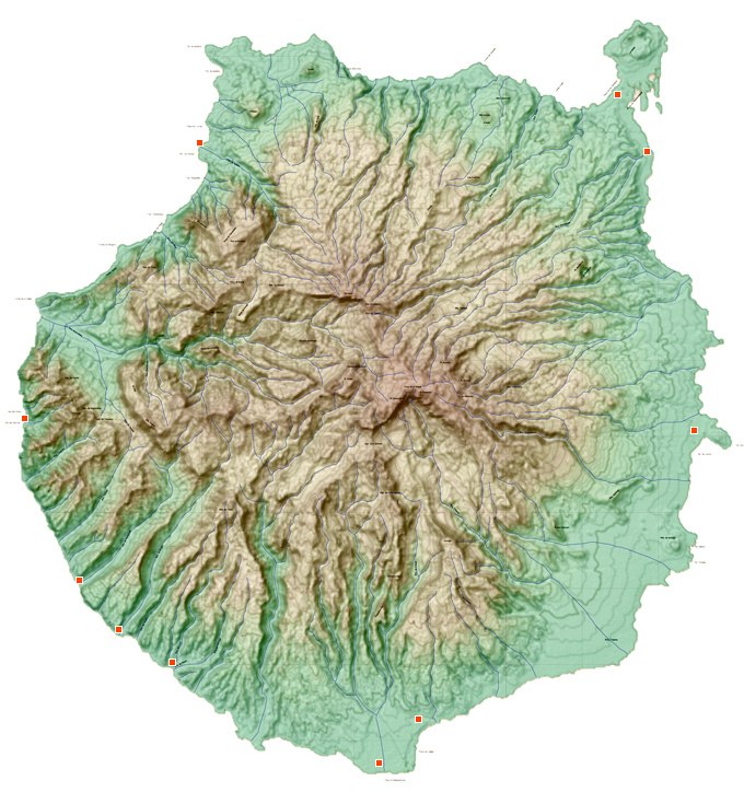 Diese topgrafische Reliefkarte von Gran Canaria basiert auf Satelliten-Daten der NASA Shuttle Radar Topography Mission. Veröffentlicht wurde diese Landkarte im Original von "Cartografiacanaria" unter der CC Creative Commons Lizenz. Zugunsten einer besseren Reliefdarstellung haben wir die Karte nachbearbeitet.