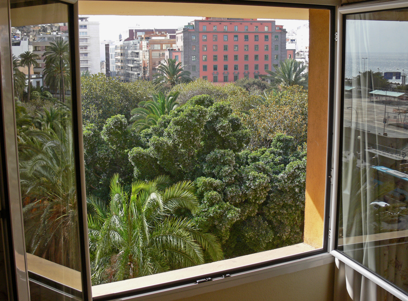 Eines der komfortabel, gediegenen und relativ großräumigen Zimmer bekommen sie hier bereits für ab ca. 35 € pro Tag und Person. Viele der Zimmer verfügen über Meerblick über den Parque San Telmo hinweg. Der Sonnenaufgang über dem Meer und die in den Hafen einfahrenden Schiffe lassen sich vom Zimmer aus in Ruhe beobachten. Trotz des munteren Verkehrs um die den Platz sind die Zimmer aber ruhig, da sehr guht abgeschirmt.
